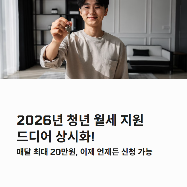 최근 반가운 소식이 들려왔습니다. 한시적으로 운영되던 2026년 청년 월세 지원 사업이 드디어 상시화로 전환된다는 소식입니다! 오늘 제 글을 끝까지 읽으시면 복잡한 조건 때문에 헤매지 않고 여러분의 소중한 권리를 챙기실 수 있을 거예요.
